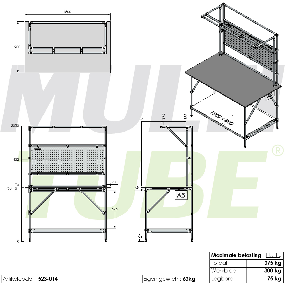 Pod blatem znajduje się solidna półka, a możliwość dodania kolejnych półek umożliwia wygodne przechowywanie części, narzędzi lub materiałów opakowaniowych. Każda półka może utrzymać do 75 kg.