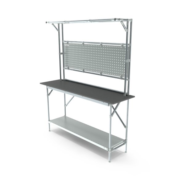 Pod blatem znajduje się solidna półka, a możliwość dodania kolejnych półek umożliwia wygodne przechowywanie części, narzędzi lub materiałów opakowaniowych. Każda półka może utrzymać do 75 kg.