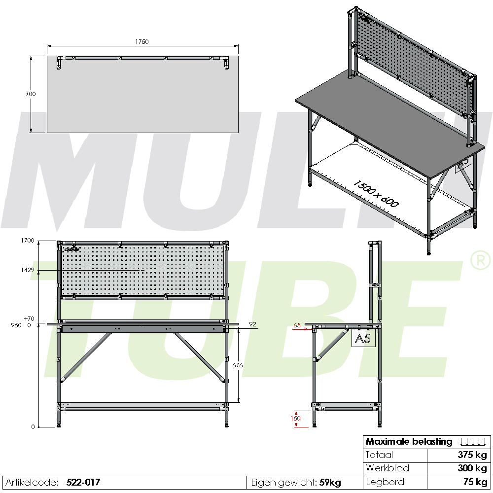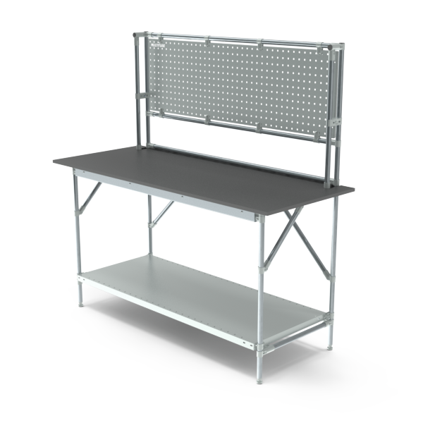Pod blatem znajduje się solidna półka, a możliwość dodania kolejnych półek umożliwia wygodne przechowywanie części, narzędzi lub materiałów opakowaniowych. Każda półka może utrzymać do 75 kg.
