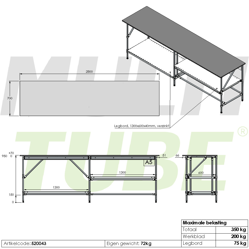 Blat oferuje nośność do 300 kg i jest odporny na intensywne codzienne użytkowanie. Pod blatem znajduje się solidna półka, a możliwość dodania kolejnych półek umożliwia wygodne przechowywanie części, narzędzi lub materiałów opakowaniowych. Każda półka może utrzymać do 75 kg.