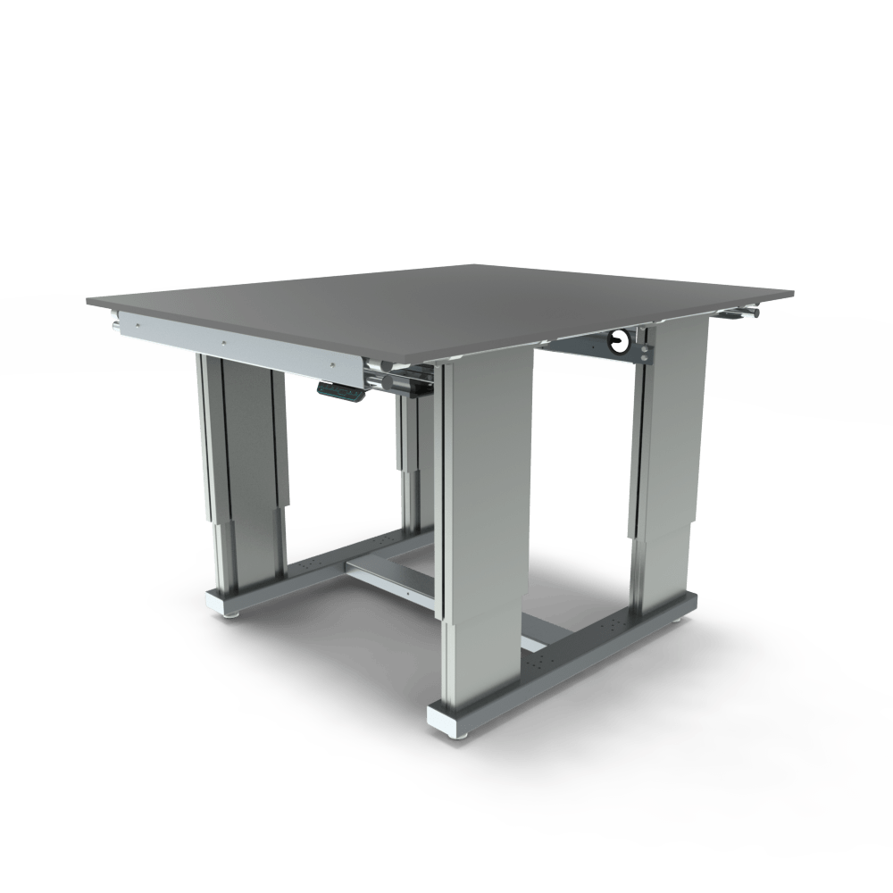 Dzięki wytrzymałym, przemysłowym kolumnom podnoszącym elektryczny stół roboczy oferuje imponującą nośność do 350 kg, co czyni go idealnym rozwiązaniem do zastosowań przemysłowych i produkcyjnych.