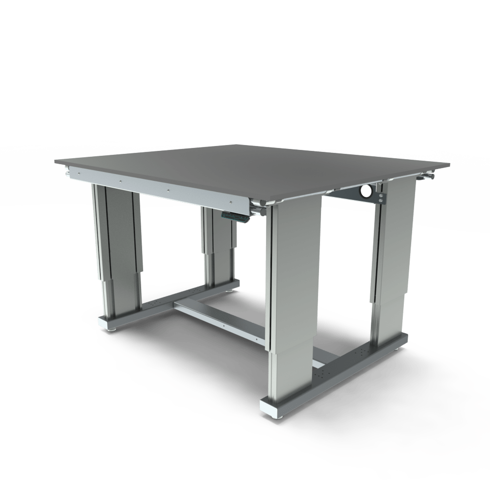 Dzięki wytrzymałym, przemysłowym kolumnom podnoszącym elektryczny stół roboczy oferuje imponującą nośność do 350 kg, co czyni go idealnym rozwiązaniem do zastosowań przemysłowych i produkcyjnych.