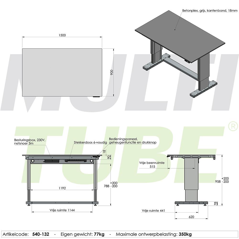 Stół roboczy regulowany elektrycznie, 1500x900mm