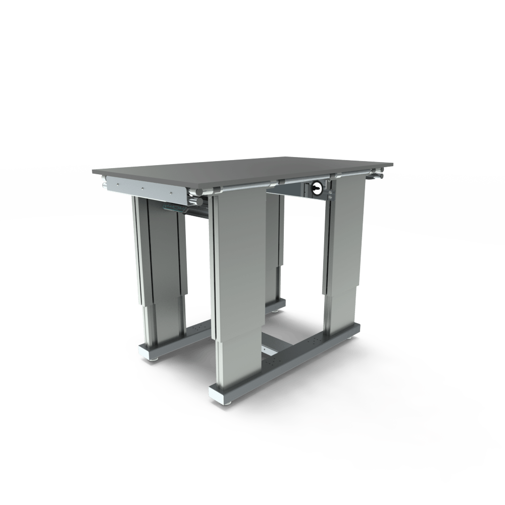 Dzięki wytrzymałym, przemysłowym kolumnom podnoszącym elektryczny stół roboczy oferuje imponującą nośność do 350 kg, co czyni go idealnym rozwiązaniem do zastosowań przemysłowych i produkcyjnych.